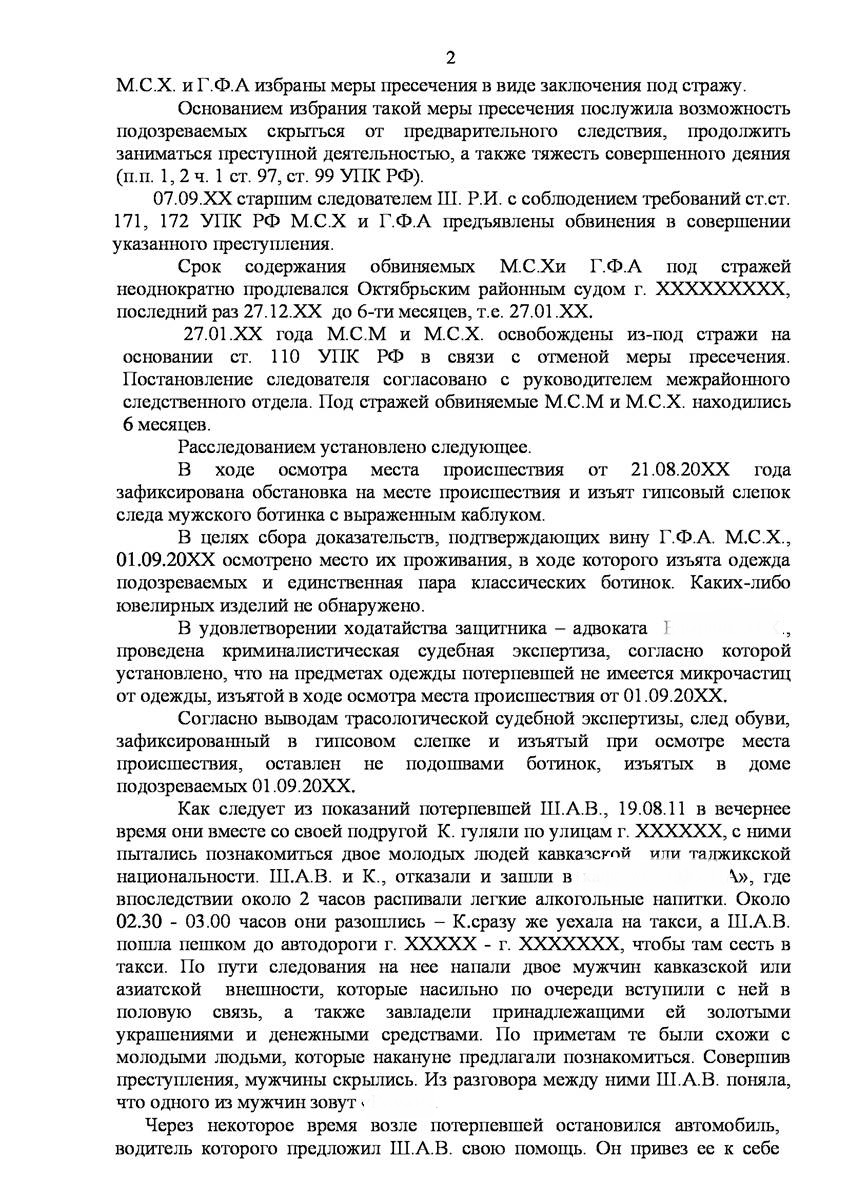 Адвокаты в Новороссийске добился прекращения уголовного дела на стадии предварительного расследования по реабилитирующим основаниям в отношении двух граждан иностранного государства обвиняемых органами предварительно следствия в совершении преступления предусмотренного п. «а» ч.2 ст.131 УК РФ (изнасилование совершенное группой лиц) и п."а" , п."г" ч.2 ст.161 УК РФ (грабёж), наказание за которое предусматривает лишение свободы от восьми до пятнадцати лет, то есть преступление, которое в соответствии с ч.5 ст.15 Уголовного Кодекса Российской Федерации отнесено к категории особо тяжких преступлений.