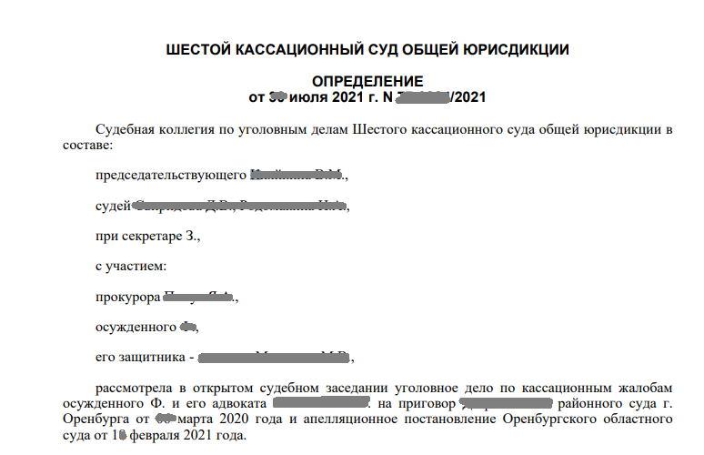 ШЕСТОЙ КАССАЦИОННЫЙ СУД ОБЩЕЙ ЮРИСДИКЦИИ ОПРЕДЕЛЕНИЕ